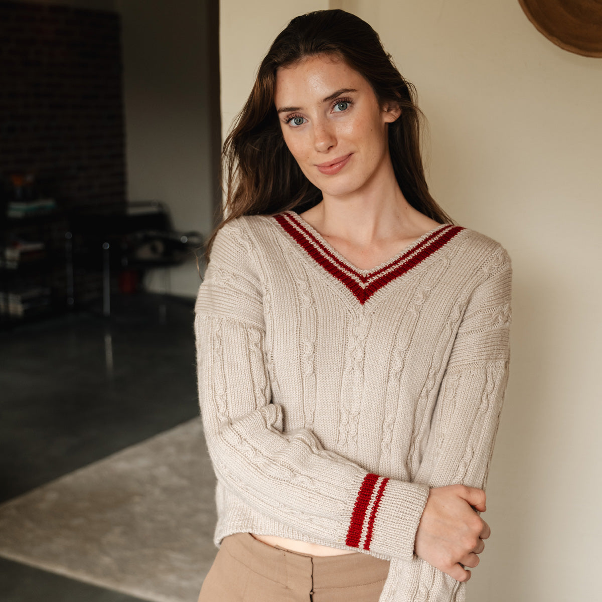 Matchday Sweater kombinerer sporty struktur med klassisk eleganse. De små kontrastene og det tydelige mønsteret gir genseren et sofistikert uttrykk, samtidig som den er myk og behagelig å ha på. Den enkle flettestrukturen gjør dette til et perfekt prosjekt for deg som vil prøve å strikke fletter for første gang!