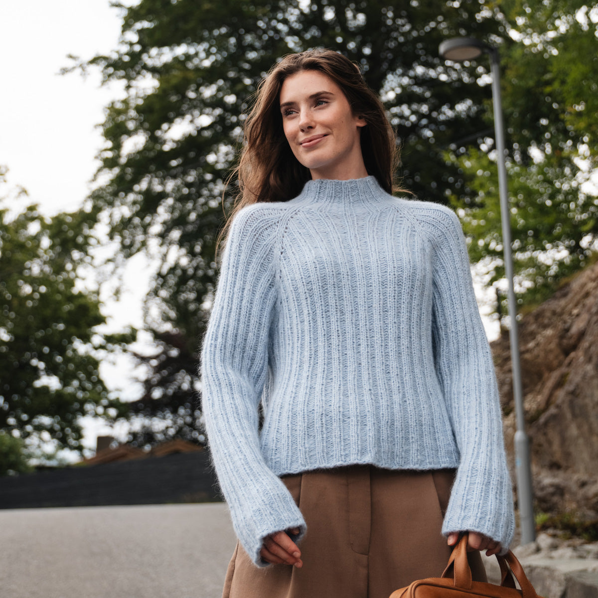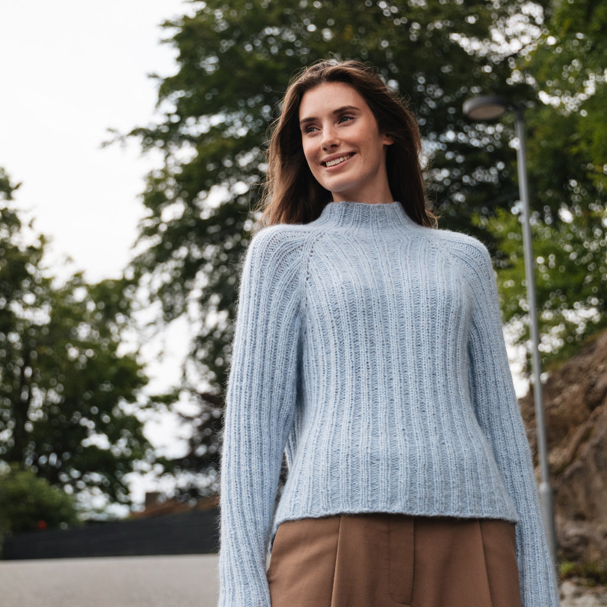 Genseren på bildet er i størrelse XL i fargen Isblå.